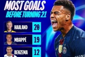 体育资讯4月14日讯 欧冠官方统计了U21球员的欧冠历史进球情况,哈兰德力压姆巴佩居首。